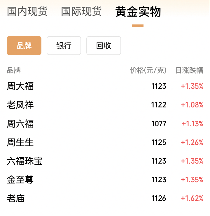 国内金饰价格水涨船高,我国黄金饰品克价首次突破1120元关口。数据显示,9月30日,老庙黄金金饰价格达到1126元/克;周生生金饰价格为1125元/克,周大福、六福珠宝、金至尊均为1123元/克,老凤祥金饰价格为1122元/克。